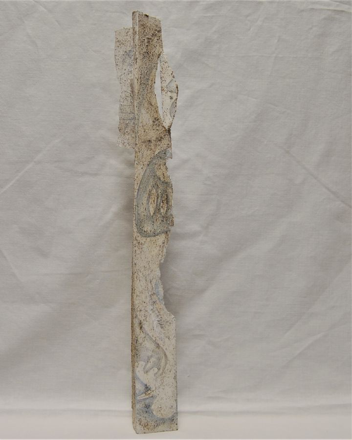 Opera in cartoncino e tecnica mista: colla, sabbia, graffito, colore acrilico, inchiostro